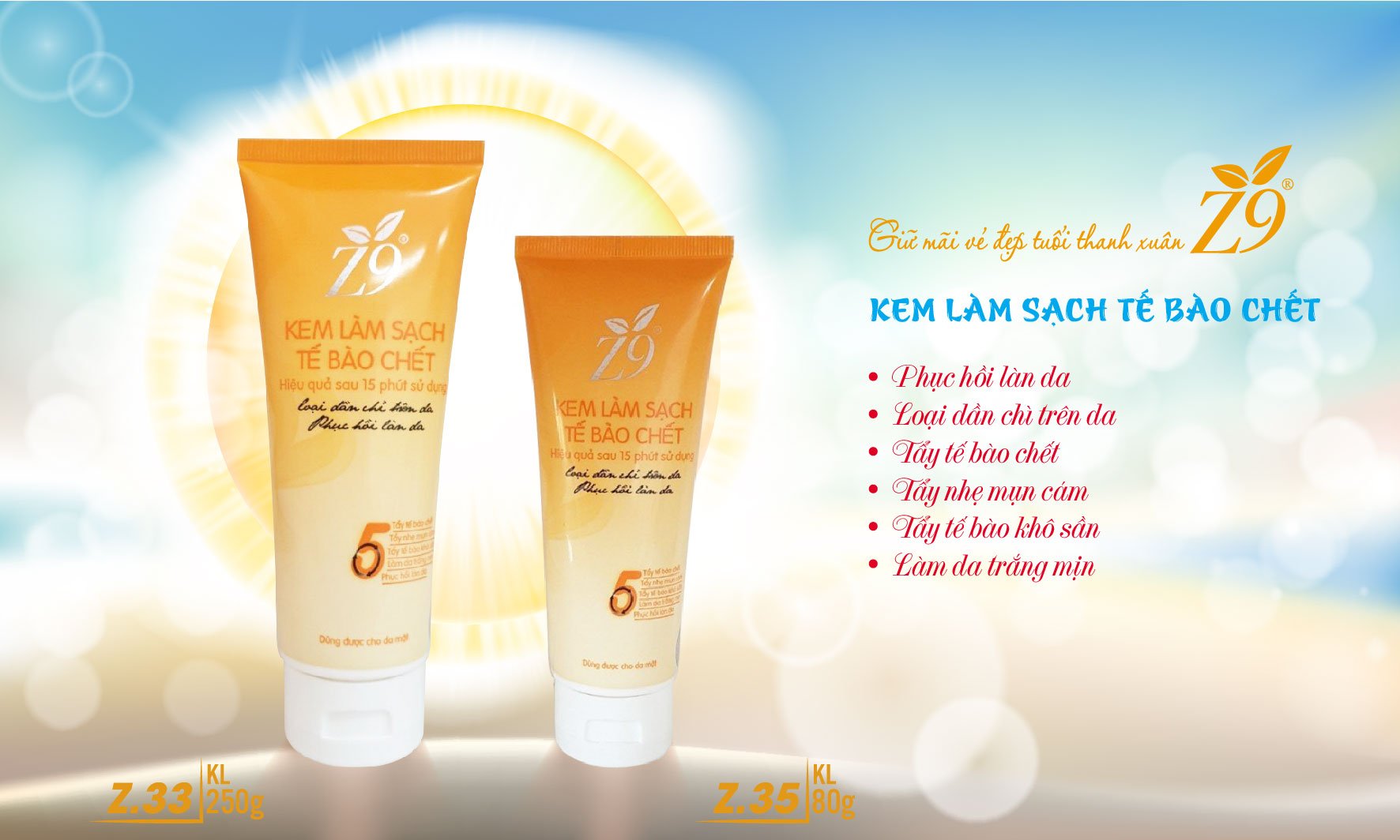 Với kem làm sạch tế bào chết Z9, bạn sẽ thật yên tâm sau khi sử dụng. Chất kem trắng trong sẽ loại sạch tế bào chết, khô sần, làm sạch sâu lỗ chân lông. Từ đó làn da bạn sẽ trắng dần lên sau khi sử dụng.