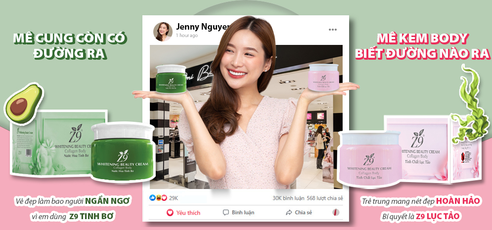 - Song song với sự tin tưởng và ủng hộ của khách hàng đối với dòng Kem Body Tinh Chất Lục Tảo thì nhà Z9 còn cho ra đời thêm Kem Body Nước Hoa Tinh Chất Bơ