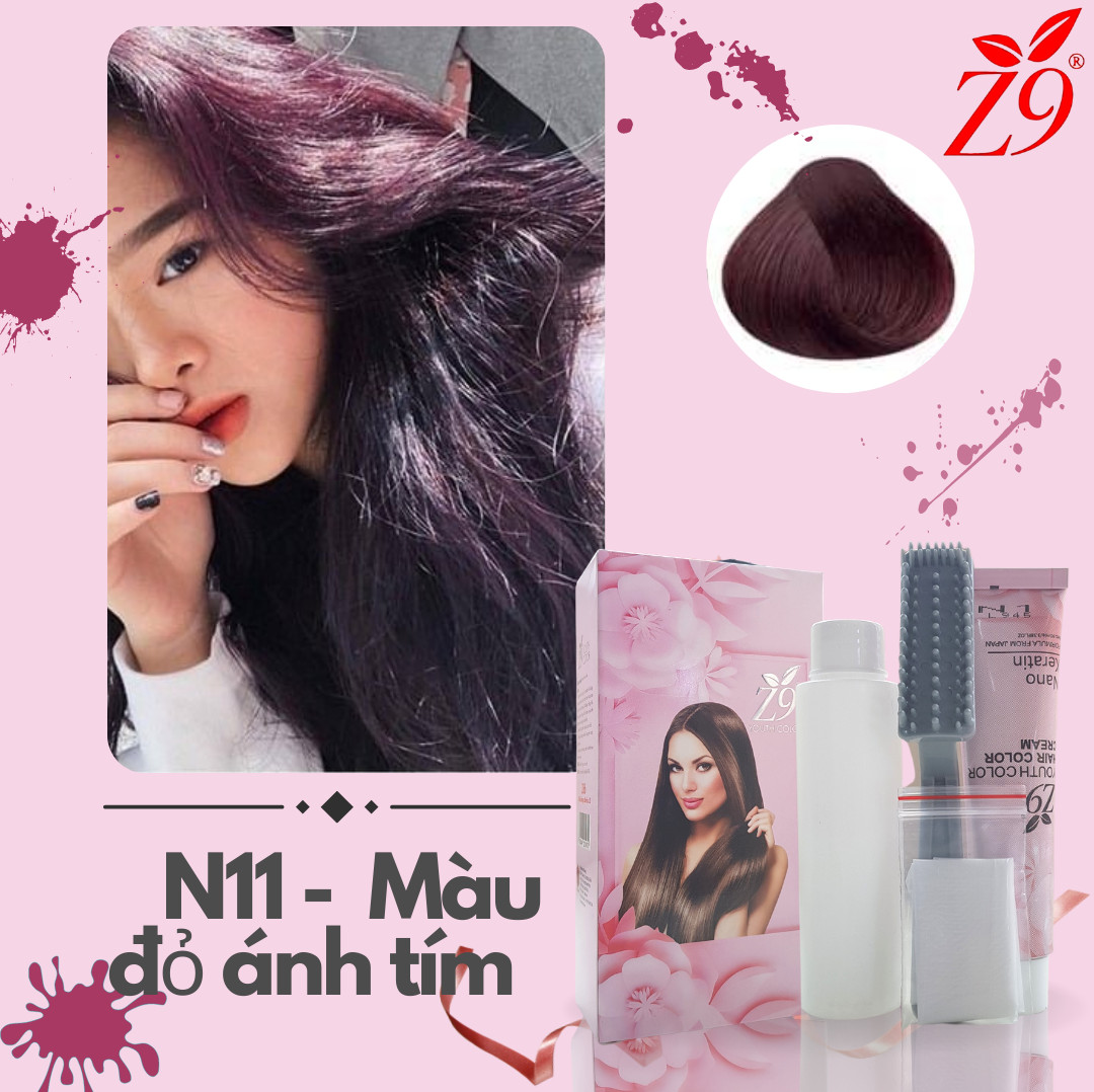 NHUỘM PHỦ BẠC MÀU NÂU ĐỎ ÁNH TÍM + Tặng Oxy _ Lược _ bao tay ( Hộp tuýp 60ml )