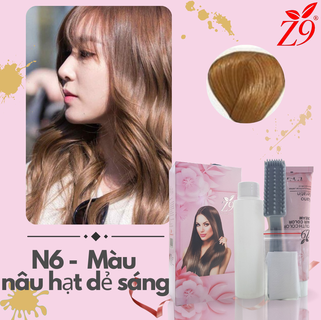 NHUỘM PHỦ BẠC MÀU NÂU HẠT DẺ SÁNG + Tặng Oxy _ Lược _ bao tay ( Hộp tuýp 60ml )