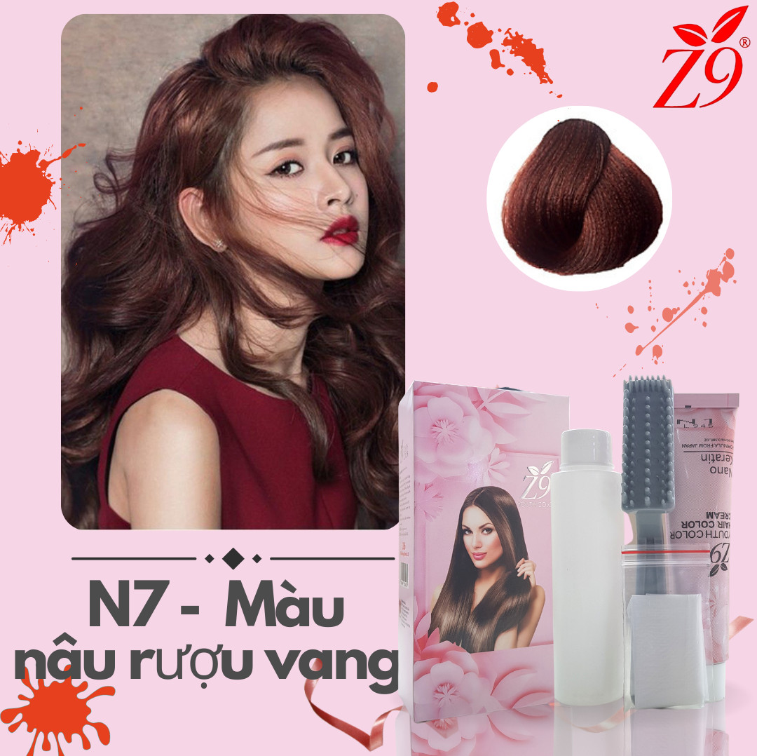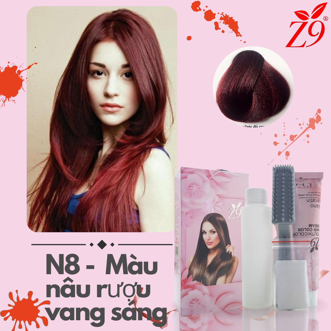 NHUỘM PHỦ BẠC MÀU NÂU RƯỢU VANG SÁNG + Tặng Oxy _ Lược _ bao tay ( Hộp tuýp 60ml )