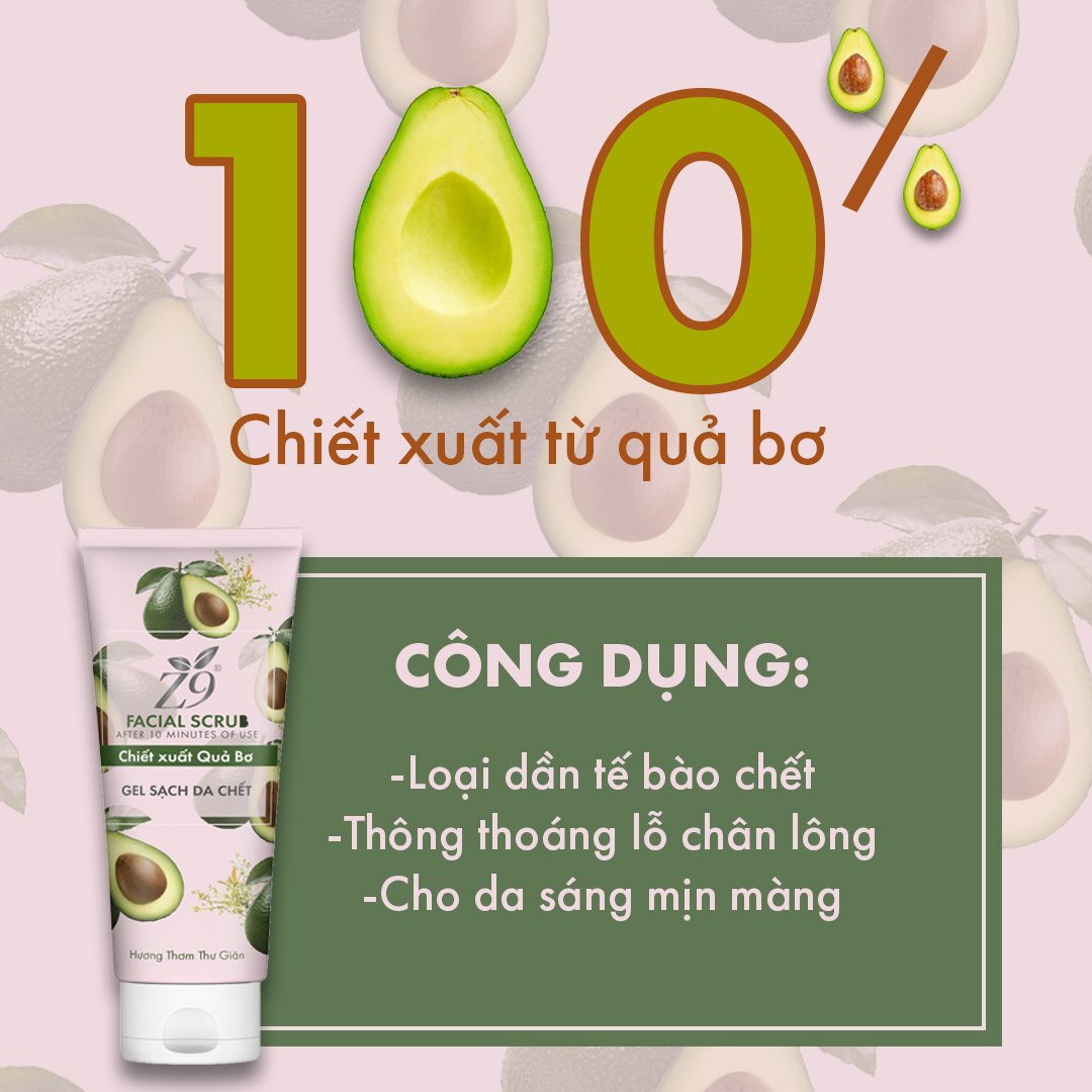 🌸Sản Phẩm Z9 Gel Sạch Da Chết Chiết Xuất Quả Bơ - Kẻ thù của lớp da chết cứng đầu