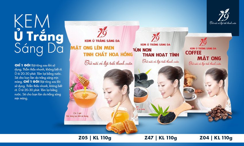 Z9 kem ủ trắng sáng da bùn non than hoạt tính với thành phần than hoạt tính cùng tinh chất collagen và các loại acid amin, vitamin, có tác dụng làm sạch, làm trắng da, duy trì làn da mịn màng, tăng độ đàn hồi, giảm vết nhăn... Ngoài ra kem ủ trắng còn có thể làm phai những vết đồi mồi, sạm đen trên da, giúp làn da trắng đồng đều, mang đến cho bạn một làn da trắng hồng tự nhiên.